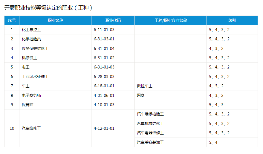 社會(huì)化職業(yè)技能等級(jí)認(rèn)定工種