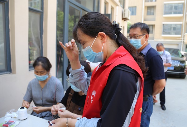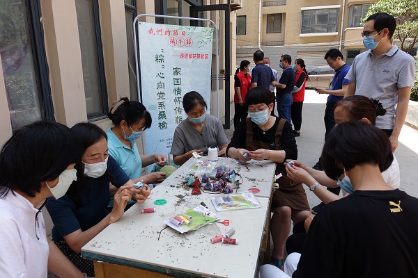 活動現(xiàn)場,大家有說有笑,其樂融融,處處洋溢著濃郁的節(jié)日氛圍。“先拿粽葉把它卷起來,窩成一個三角,這樣米就不會漏出來……”,老同志們分享著包粽子的經(jīng)驗,互相搭檔配合,一邊包粽子,一邊進行熱烈交流。萋萋苦艾納香囊,傳承千年未泯香,F(xiàn)場還準備了香囊制作材料——布料、艾草、掛繩、針線包等,大家興致盎然,紛紛穿針引線,認細心地縫制著各式各樣的香囊。