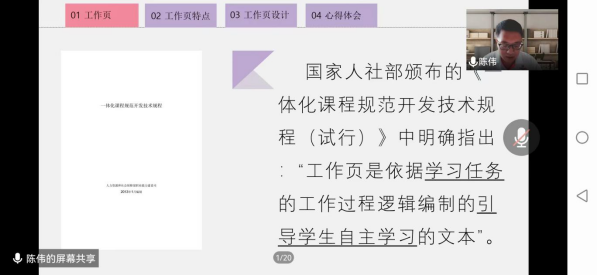 工作頁是一體化教學(xué)中關(guān)鍵的教學(xué)材料,陳偉以《基于一體化的課程工作頁開發(fā)與實(shí)踐——以AutoCAD一體化課程為例》為題,主要從一體化工作頁的內(nèi)涵、一體化工作頁的特點(diǎn)、一體化工作頁設(shè)計及注意問題和心得體會四個方面進(jìn)行分享,讓大家對一體化工作頁開發(fā)有了系統(tǒng)、全面的認(rèn)識。程浩主要從論文選題、內(nèi)容優(yōu)化、升華點(diǎn)睛三個方面,分享了一篇優(yōu)秀論文的寫作步驟與寫作技巧。蔣朔首先播放了自己的獲獎微課《紅底證件照制作》,然后從選題、寫腳本、視頻制作(拍攝+錄屏)、音頻制作(錄音+剪輯)四個方面,為大家上了一堂如何制作高質(zhì)量微課的培訓(xùn)課。