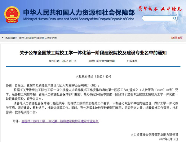 8月16日,人力資源和社會保障部職業(yè)能力建設司網(wǎng)站發(fā)布了《關于公布全國技工院校工學一體化第一階段建設院校及建設專業(yè)名單的通知》,我院獲批為全國技工院校工學一體化第一階段建設院校,獲批專業(yè)為化工工藝、環(huán)境保護與檢測、工業(yè)機器人應用與維護。