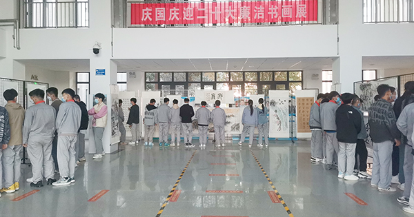 為進一步深化黨史學習教育,深入推進學院黨風廉政建設,營造濃厚的廉政文化氛圍,形成崇尚廉潔的校園風氣,樹牢全院師生尊廉崇潔的堅定信念,在歡度新中國成立73周年、喜迎黨的二十大召開之際,學院組織舉辦了廉潔書畫作品展,書畫展共收集師生書法、繪畫等原創(chuàng)作品70余幅,并篩選出20余幅優(yōu)秀作品進行了集中展覽,各系部師生觀看了書畫展。