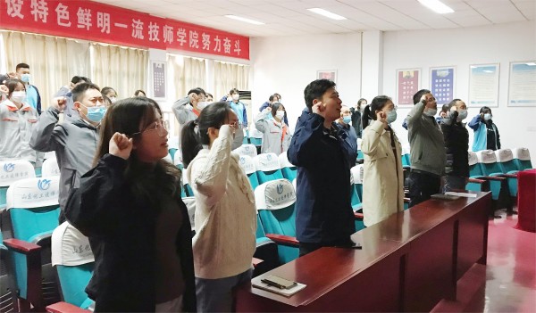 智能控制與自動化系副主任劉偉杰帶領(lǐng)師生團(tuán)員代表宣誓——爭當(dāng)魯班傳人。