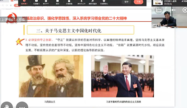 報(bào)告會采用線上線下相結(jié)合的方式進(jìn)行。各黨支部書記,黨政辦公室、組織人事處、宣傳部、紀(jì)檢監(jiān)察審計(jì)辦公室全體黨員在主會場參加會議;各部門中層正副職、黨支部全體黨員、青年理論學(xué)習(xí)小組成員在分會場騰訊會議線上參會。