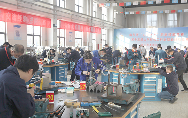 2月15日,山東省“技能興魯”職業(yè)技能大賽——第十三屆山東省化工行業(yè)職業(yè)技能大賽在我院高鐵新區(qū)校區(qū)順利開賽。來自全省63家大型知名化工企業(yè)和職業(yè)院校的81支代表隊(duì)162名選手參加化學(xué)檢驗(yàn)員和鉗工兩個職業(yè)(工種)6個賽項(xiàng)技能操作部分的角逐,吹響了2023年開春化工行業(yè)職業(yè)技能競賽的號角。