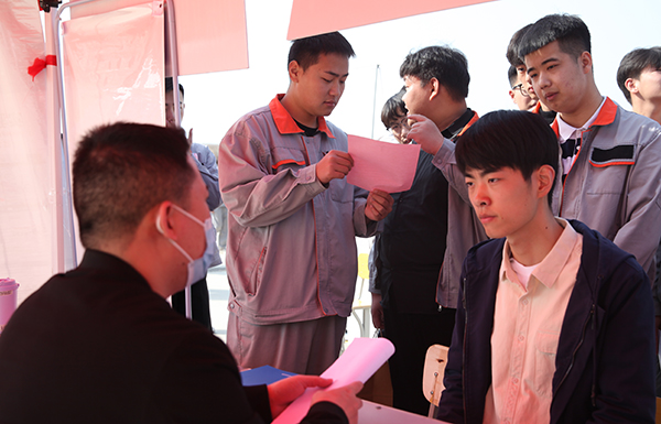 招聘會現(xiàn)場人頭攢動(dòng),氣氛熱烈,秩序井然,用人單位誠意滿滿、求賢若渴;畢業(yè)生積極投遞推薦表,自信陽光地向用人單位展示所學(xué)知識和本領(lǐng),并同自己心儀的用人單位就工作內(nèi)容、崗位職責(zé)、發(fā)展前景、薪資待遇等進(jìn)行深入交流。據(jù)悉,來自魯南高科技化工園區(qū)的上市企業(yè)聯(lián)泓新材料科技有限公司等本地企業(yè)薪資待遇優(yōu)厚,深受畢業(yè)生青睞;率團(tuán)來校參加招聘會的東營市河口區(qū)人力資源和社會保障局副局長張建偉說,“看到本地企業(yè)優(yōu)厚的薪酬待遇,倍感招工壓力,我們東營地區(qū)的化工企業(yè)五險(xiǎn)一金齊全,保底工資均在6000元以上,熱烈歡迎各專業(yè)畢業(yè)生踴躍報(bào)名”。前來陪同畢業(yè)生參加招聘會的家長,聽到這些介紹,也倍感振奮,“感謝學(xué)校組織優(yōu)質(zhì)企業(yè)送崗進(jìn)校園,讓學(xué)生在校內(nèi)就能實(shí)現(xiàn)輕松選崗就業(yè),很欣慰自己當(dāng)初給孩子正確的求學(xué)選擇”。