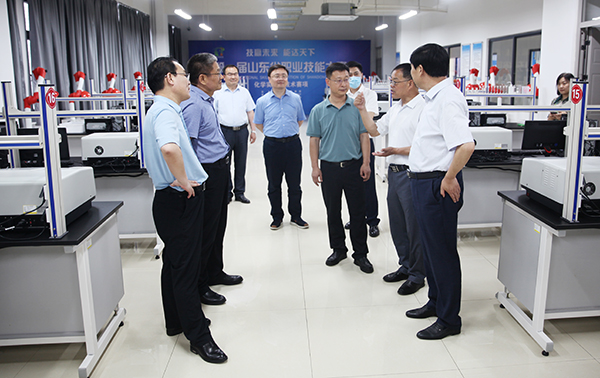 李士功一行實(shí)地視察學(xué)院高鐵新區(qū)校區(qū)建設(shè)現(xiàn)場,參觀世界技能大賽化學(xué)實(shí)驗(yàn)室技術(shù)項(xiàng)目中國集訓(xùn)基地、山東應(yīng)急管理與安全生產(chǎn)實(shí)訓(xùn)基地、化工生產(chǎn)實(shí)訓(xùn)基地,并舉行座談會。