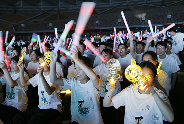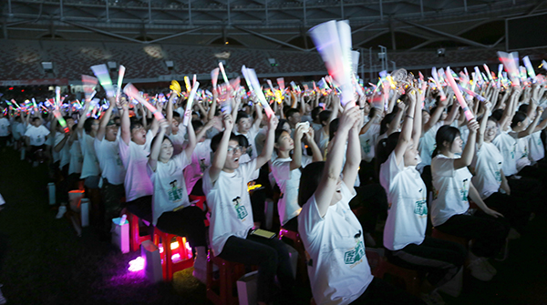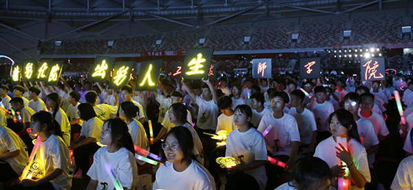 典禮晚會(huì)在“一起向未來(lái)”的音樂(lè)聲中掀起高潮,我院學(xué)子呈現(xiàn)了精心排演的文藝節(jié)目歌伴舞《青春向太陽(yáng)》、歌曲《星辰大!罚W耀現(xiàn)場(chǎng),充分展現(xiàn)了同學(xué)們昂揚(yáng)向上的青春活力和對(duì)未來(lái)美好生活的憧憬,博得觀眾雷鳴般的掌聲。