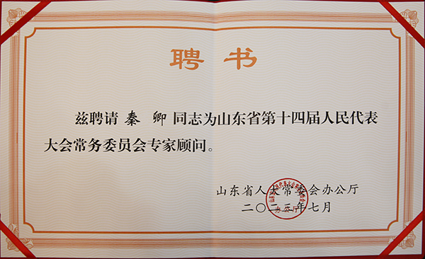 9月4日,省十四屆人大常委會專家顧問聘書頒發(fā)儀式暨專家顧問座談會在濟南召開。會議宣布了聘任省十四屆人大常委會專家顧問的決定,我院教師秦卿在安全生產(chǎn)與應(yīng)急管理領(lǐng)域成績突出,被聘請為社會建設(shè)委員會專家顧問,任期5年。