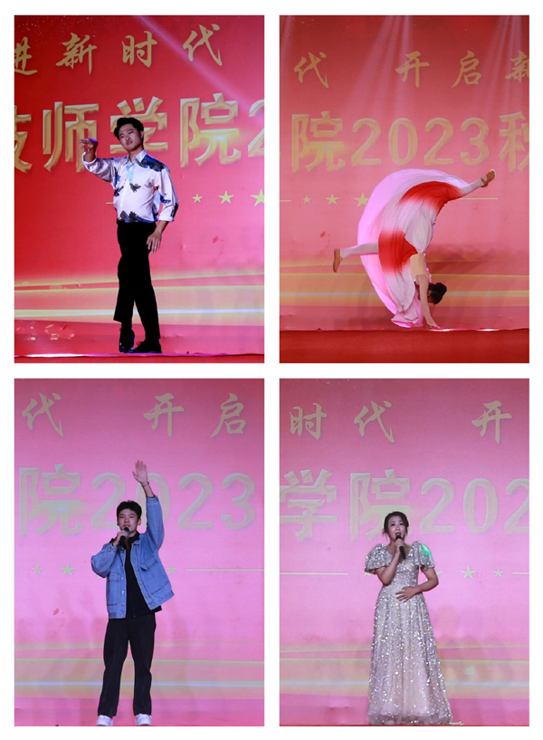金風送爽,碩果盈枝,凝心聚力,譜寫嶄新華章。高鐵校區(qū)晚會在合唱《校園的早晨》中拉開序幕,節(jié)奏歡快靈動,點燃全場氛圍,伴隨著現(xiàn)場熠熠燈光,引發(fā)全場雷鳴般的掌聲。舞蹈《青春向太陽》《動感青春》《萬疆》《版納印象》《魅力街舞》、歌伴舞《大漠深處》《日不落》、吉他彈唱《相思淚》、對唱《武家坡》、合唱《我的好兄弟》《游子吟》、歌曲串燒《吉他彈唱》、三句半、模特走秀、武術(shù)表演等多種形式文藝節(jié)目輪番上演,精彩紛呈,現(xiàn)場觀眾掌聲、喝彩聲匯成一片歡樂的海洋。