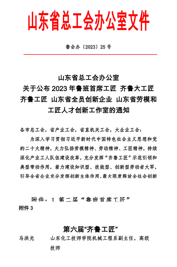 近日,從山東省總工會(huì)辦公室獲悉,2023年,省總工會(huì)開展了魯班首席工匠、齊魯大工匠、齊魯工匠、山東省全員創(chuàng)新企業(yè)、山東省勞模和工匠人才創(chuàng)新工作室培育推薦工作。經(jīng)過層層申報(bào)遴選,我院機(jī)械工程系教師馬洪光獲評(píng)第六屆“齊魯工匠”。