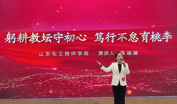 技能報國》為題,講述了自己的成長經(jīng)歷,以及對職業(yè)教育的堅守和追求;陳端端以《躬耕教壇守初心 篤行不怠育桃李》為題,講述了學院與曲阜九巨龍學校開展德育共建及“關(guān)愛孤兒