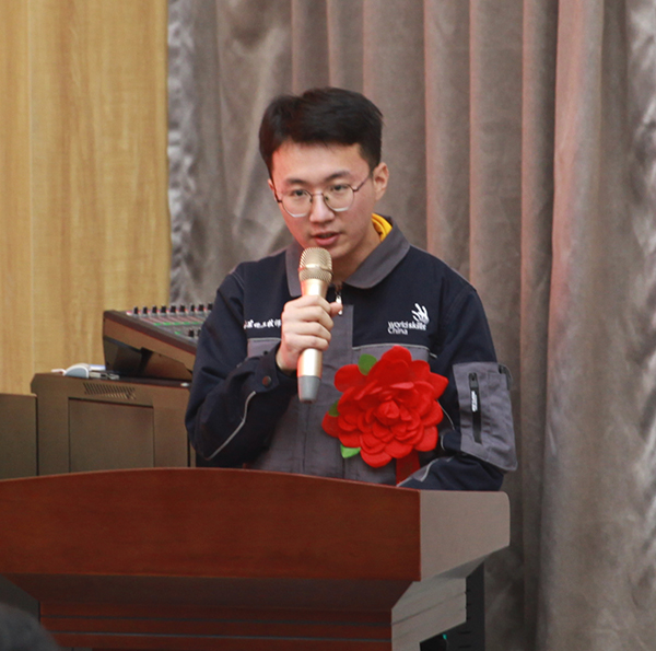 學生代表朱文聰分享了參加技能競賽獲得優(yōu)異成績的心路歷程。