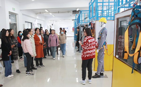 在講解員引領下,全體女教職工饒有興致地參觀了安全文化長廊、安全生產(chǎn)警示教育中心、個體防護和應急救護規(guī)范使用中心、應急指揮及處置推演室、危險化學品特種作業(yè)過程實訓室、防災減災科普體驗館、消防應急操作體驗室;親身體驗了地震平臺和傾斜通道,實踐了心肺復蘇模擬急救和應急救護器材使用,認識了各類消防安全器材,參與了模擬火災逃生、安全知識搶答和各類消防滅火器的模擬使用互動實踐。