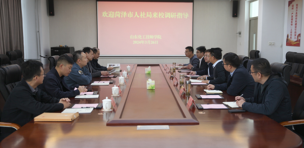 3月26日,菏澤市人社局職建科科長(zhǎng)尹強(qiáng)、東明縣人社局局長(zhǎng)孫培興一行五人來(lái)我院高鐵新區(qū)校區(qū)考察交流,學(xué)院領(lǐng)導(dǎo)陸洋、崔世玉在會(huì)議室接待到訪領(lǐng)導(dǎo)并座談。