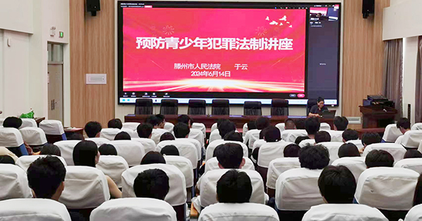 為增強(qiáng)學(xué)生法制觀念,強(qiáng)化學(xué)生遵紀(jì)守法的自覺性,構(gòu)建和諧校園。6月14日,學(xué)院邀請滕州市人民法院法官在高鐵新區(qū)校區(qū)報(bào)告廳舉辦預(yù)防青少年犯罪法制講座,全體同學(xué)通過“線上+線下”結(jié)合方式聆聽講座。
