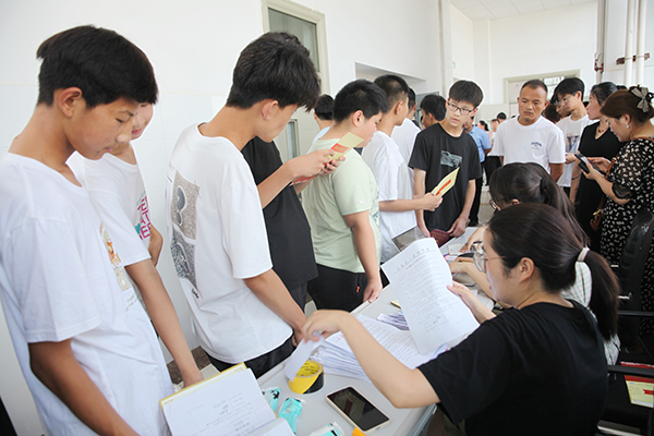 參加面試同學在家長的帶領下,攜帶身份證明和誠信承諾書,分別在報考專業(yè)的面試室外有秩序等候;招生就業(yè)處、各系部師生志愿者現(xiàn)場開展了路線引導和咨詢答疑服務;各系部分別對報考同學開展了形式多樣的面試,既有生活常識、專業(yè)知識的問答,又有語言表達、問題處理綜合素質的內(nèi)容,F(xiàn)場秩序井然,各程序組織周密、銜接有序,面試成功的新同學領取入學通知書。