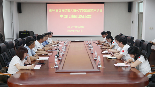 8月26日,第47屆世界技能大賽化學實驗室技術項目中國代表團出征儀式在我院高鐵新區(qū)校區(qū)舉行。山東省人力資源和社會保障廳職業(yè)能力建設處二級調研員程黎,化學實驗室技術項目專家組組長季劍波,學院黨委書記孫晉東,副院長陸洋、崔世玉出席會議。第46屆世界技能大賽特別賽化學實驗室技術項目金牌獲獎選手姜雨荷,第47屆世界技能大賽化學實驗室技術項目參賽選手、專家、教練、翻譯參加會議,學院副院長陸洋主持會議。