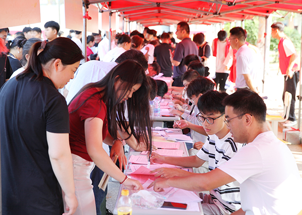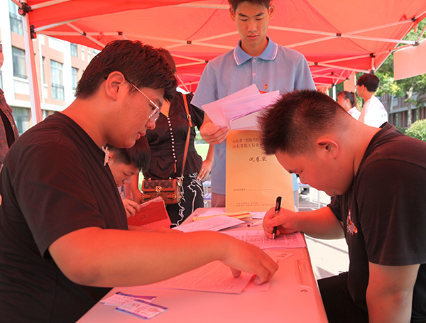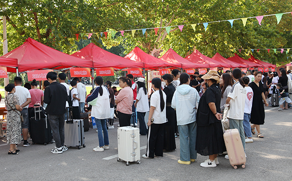 迎新現(xiàn)場,和藹可親的班主任老師登記信息、安排宿舍、答復(fù)家長問題;身著紅馬甲的志愿者同學(xué),引導(dǎo)方向、搬運(yùn)行李、答疑解惑、介紹校園,他們忙碌奔波在校門接站處、迎新公交車、咨詢處、臨時乘車處、公寓用品領(lǐng)取處……熱情周到的幫助,贏得了送新家長們的一致贊揚(yáng)。