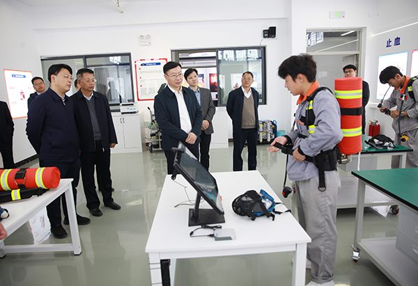 在化工生產(chǎn)實(shí)訓(xùn)中心,張濤詳細(xì)了解了專業(yè)基地建設(shè)情況,與專業(yè)教師就專業(yè)建設(shè)、人才培養(yǎng)、課程設(shè)置、一體化課程建設(shè)、企業(yè)人才需求和畢業(yè)生就業(yè)后崗位工作情況等問(wèn)題,與現(xiàn)場(chǎng)專業(yè)教師進(jìn)行研討交流。張濤指出,要深入分析化工行業(yè)技能人才發(fā)展趨勢(shì),以市場(chǎng)需求為導(dǎo)向,制定專業(yè)教學(xué)標(biāo)準(zhǔn)、教學(xué)計(jì)劃,追蹤企業(yè)技術(shù)進(jìn)步、產(chǎn)業(yè)升級(jí),提供更加貼近生產(chǎn)實(shí)際的技能人才,滿足化工產(chǎn)業(yè)高質(zhì)量發(fā)展需求。在世界技能大賽化學(xué)實(shí)驗(yàn)室技術(shù)項(xiàng)目中國(guó)集訓(xùn)基地,張濤聽(tīng)取了基地實(shí)訓(xùn)室建設(shè)、設(shè)施設(shè)備功能配置、參賽選手集訓(xùn)、承辦各級(jí)各類賽事和選手培養(yǎng)成績(jī)匯報(bào),與第45屆世賽參賽選手李華健進(jìn)行了親切交流;在化工安全生產(chǎn)實(shí)訓(xùn)基地,觀摩了現(xiàn)場(chǎng)師生的實(shí)訓(xùn)操作演練,并結(jié)合實(shí)際問(wèn)題與現(xiàn)場(chǎng)師生進(jìn)行了深入交流。