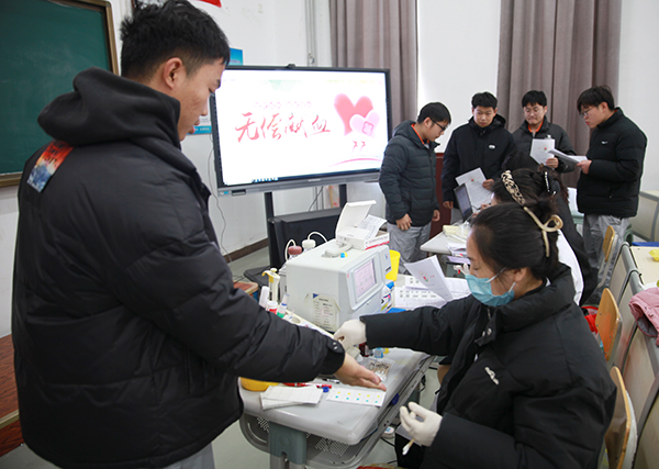 現(xiàn)場,在工作人員指導下,參加獻血活動的師生按照流程完成獻血登記、血壓測量、采血化驗,檢測合格后,在采血車內(nèi)伸出手臂有序獻血?粗蠹t的鮮血緩緩流入血袋,大家為自己用熱血奉獻了愛心,延續(xù)了生命,傳遞了溫暖,傳遞了社會正能量,都由衷地感到自豪。