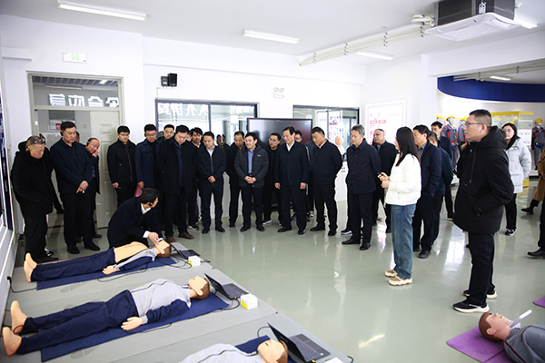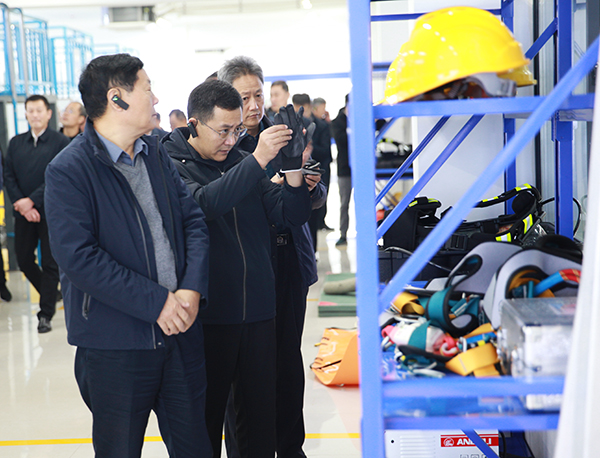 趙登偉一行在我院專業(yè)教師的講解下,詳細了解了山東省化工生產(chǎn)安全實訓基地功能區(qū)域劃分情況、各實訓室基礎功能簡介、安全員考核項目介紹和特種作業(yè)大比武競賽項目,實地查看了;凡僮鲗嵱栆(guī)范和防震減災科普教育基地,觀摩了心肺復蘇應急救護和化工生產(chǎn)事故應急指揮推演,體驗了消防應急疏散逃生,觀看了安全文化長廊和安全警示視頻,并就關心的問題與現(xiàn)場教師展開了交流研討。