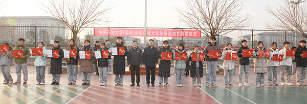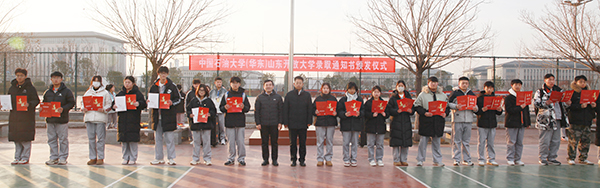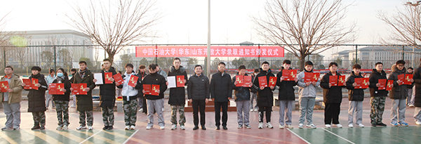12月30日,學(xué)院在高鐵新區(qū)校區(qū)舉辦成人高等教育錄取通知書頒發(fā)儀式,學(xué)院院長伊文濤、副院長崔世玉為考取中國石油大學(xué)(華東)、山東開放大學(xué)的學(xué)生頒發(fā)了錄取通知書和喜報。儀式由教研督導(dǎo)處處長趙莉主持。