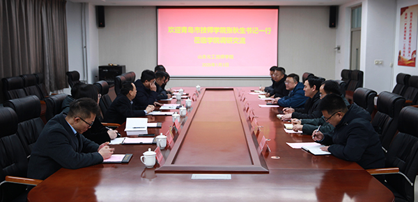 1月3日,青島市技師學(xué)院黨委書記張秋生,黨委副書記、院長韓東,黨委委員、副院長劉興一一行九人來我院調(diào)研交流。學(xué)院黨委書記陸洋,黨委副書記、院長伊文濤,黨委委員、副院長崔世玉在高鐵新區(qū)校區(qū)接待到訪客人并座談交流。