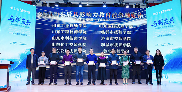 1月10日,山東省互聯(lián)網(wǎng)傳媒集團(tuán)大眾網(wǎng)•海報(bào)新聞主辦的2024山東教育品牌發(fā)展年會(huì)在青島舉行,會(huì)議發(fā)布 “2024山東最佳社會(huì)聲譽(yù)高校”“2024山東最佳品牌影響力高!币约啊2024山東最具影響力教育政務(wù)融媒體”三大榜單,并對(duì)獲獎(jiǎng)單位授牌表彰,山東化工技師學(xué)院赫然在列,同時(shí)獲評(píng)“2024山東最佳社會(huì)聲譽(yù)技師學(xué)院”“ 2024山東最具影響力教育政務(wù)融媒體(技師學(xué)院)”。