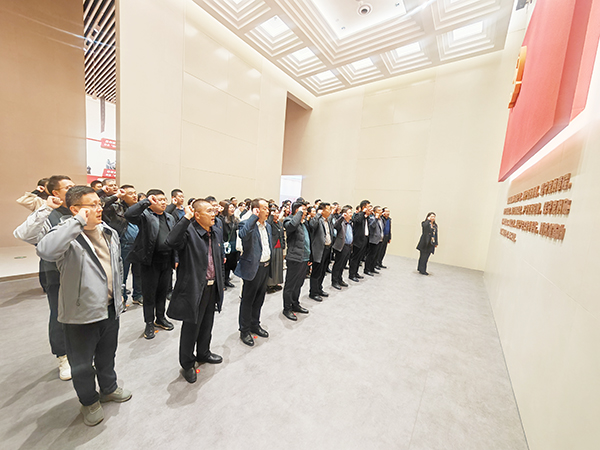 現(xiàn)場(chǎng),全體黨員干部在專業(yè)講解員引領(lǐng)下,深入開(kāi)展“沉浸式”廉政學(xué)習(xí),先后參觀了“不忘來(lái)時(shí)路”“利劍斬荊棘”“篤行致高遠(yuǎn)”展廳,通過(guò)觀看珍貴歷史文獻(xiàn)、影像資料、典型案例,全景式回顧了黨的百年奮斗歷程,深入了解不同歷史時(shí)期黨在紀(jì)律建設(shè)方面的積極探索與實(shí)踐,深刻感悟全面從嚴(yán)治黨的堅(jiān)定決心。在宣誓廳,全體黨員干部面向黨旗,重溫入黨誓詞,用錚錚誓言,砥礪初心使命。