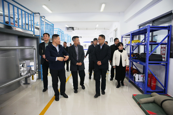 肖榮國一行在專業(yè)教師的講解引領(lǐng)下,實(shí)地參觀了化工裝備綜合實(shí)訓(xùn)室、世界技能大賽化學(xué)實(shí)驗(yàn)室技術(shù)項(xiàng)目中國集訓(xùn)基地,重點(diǎn)參觀了山東省防震減災(zāi)科普宣教基地,現(xiàn)場體驗(yàn)了模擬地震平臺(tái)、傾斜通道和消防逃生通道,通過聲光電特效直觀感受不同災(zāi)害破壞力。