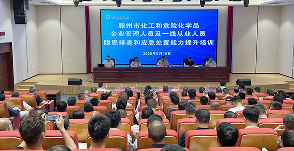 6月16日下午,滕州市化工和危險(xiǎn)化學(xué)品企業(yè)一線從業(yè)人員應(yīng)急處置能力培訓(xùn)班在學(xué)院高鐵新區(qū)校區(qū)報(bào)告廳開班。