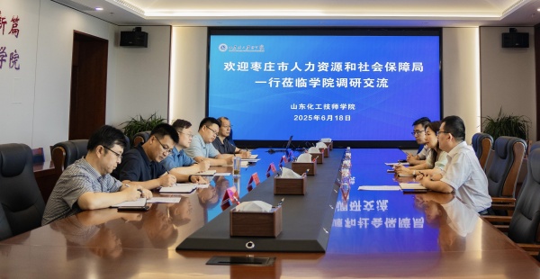 6月18日,棗莊市人力資源和社會保障局焦文靜一行三人來學院調(diào)研交流棗莊市社會保障卡“校園一卡通”應用事宜,黨委書記陸洋出席座談會。