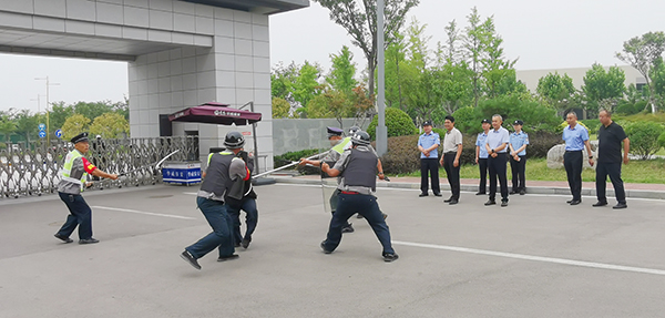 為切實提升應(yīng)對突發(fā)暴力恐怖事件的綜合指揮、快速反應(yīng)和協(xié)同作戰(zhàn)能力,6月25日,學(xué)院在高鐵新區(qū)校區(qū)組織駐校安保隊員開展反恐防暴應(yīng)急演練。滕州市公安局東沙河派出所所長趙凱,學(xué)院黨委委員、副院長朱景洋,山東華威保安集團有限公司及學(xué)院安全管理處部門人員現(xiàn)場觀摩活動。