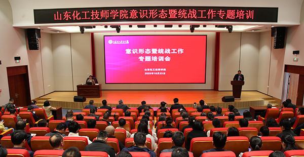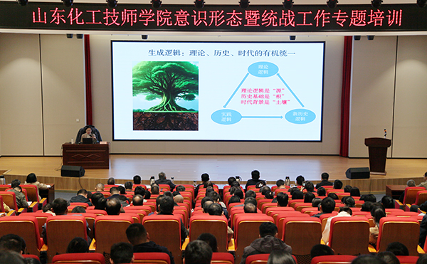 為深入學(xué)習(xí)貫徹習(xí)近平總書記關(guān)于做好新時(shí)代黨的統(tǒng)一戰(zhàn)線工作的重要思想,增強(qiáng)做好意識(shí)形態(tài)工作的責(zé)任感和能力水平,10月23日,學(xué)院在高鐵新區(qū)校區(qū)報(bào)告廳舉辦意識(shí)形態(tài)暨統(tǒng)戰(zhàn)工作專題培訓(xùn),山東省委黨校(山東行政學(xué)院)政法部副教授趙健雅博士受邀主講。學(xué)院黨委書記陸洋、院長(zhǎng)伊文濤、黨委副書記薛令偉、副院長(zhǎng)崔世玉、紀(jì)委書記蘇友華,副院長(zhǎng)段亞鋒、朱景洋,黨委委員、宣傳部部長(zhǎng)徐廷國出席培訓(xùn)會(huì)議,全體教職工參加培訓(xùn)。