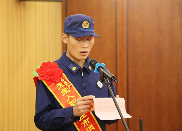 會(huì)上,伊文濤宣讀棗莊市消防救援支隊(duì)的喜報(bào),勉勵(lì)李曹洲同學(xué)開啟新的壯麗征程。
