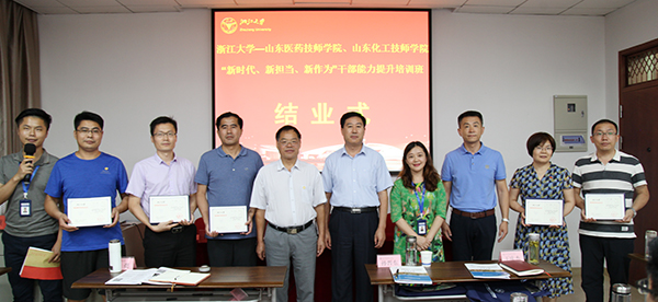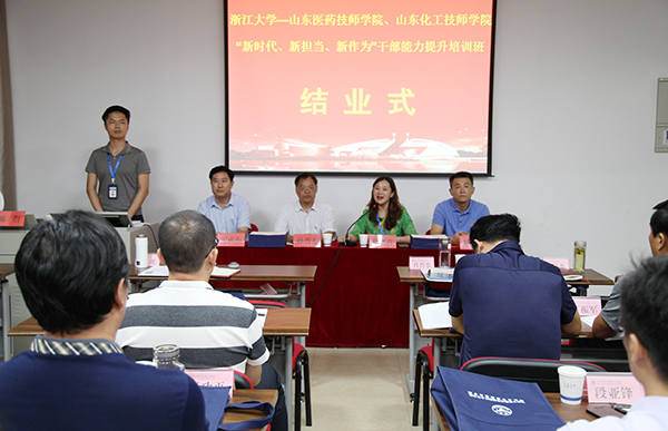 浙江大學(xué)繼續(xù)教育學(xué)院華東一區(qū)培訓(xùn)部主任駱曉青致結(jié)業(yè)辭,向各位學(xué)員介紹了全國(guó)干部教育培訓(xùn)浙江大學(xué)基地在干部教育培訓(xùn)方面的成就,祝賀大家圓滿完成培訓(xùn)任務(wù),順利從浙江大學(xué)結(jié)業(yè),并祝福山東化工技師學(xué)院擁有更加美好的明天。駱曉青與我院黨委書記孫晉東、黨委副書記、院長(zhǎng)王慶杰、山東醫(yī)藥技師學(xué)院副院長(zhǎng)楊挺一同為學(xué)員代表頒發(fā)結(jié)業(yè)證書。