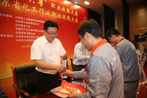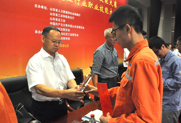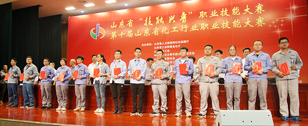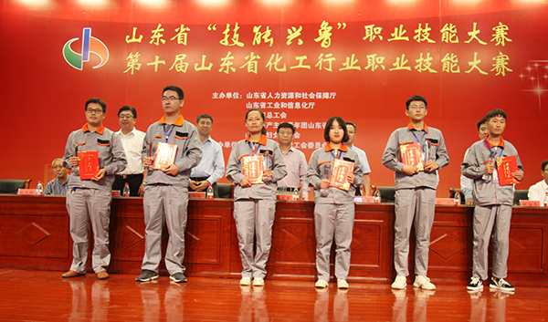 9月23日,山東省“技能興魯”職業(yè)技能大賽——第十屆山東省化工行業(yè)職業(yè)技能大賽在山東化工技師學(xué)院勝利閉幕。本次大賽共有來自全省知名大型化工企業(yè)職工、化工職業(yè)院校師生選手324人,70家單位參加了化工總控工、儀器儀表維修工兩個工種7個賽項的比賽,經(jīng)過四天激烈角逐,濱化集團(tuán)股份有限公司、魯西化工股份有限公司、山東化工技師學(xué)院等11家單位獲得團(tuán)體一等獎,山東京博石油化工有限公司的張亞南、張樂樂,濱化集團(tuán)股份有限公司的王杰等14人摘得化工總控工職工組一等獎;魯西化工股份有限公司的張鳳娟、魏發(fā)義,山東濱化東瑞化工有限公司的孫勝元等13人摘得儀器儀表維修工職工組一等獎;山東化工技師學(xué)院的楊發(fā)財、王志遠(yuǎn)、李建芹摘得化工總控工教師組一等獎;山東化工技師學(xué)院的侯成文、韓夢穎、王朝偉摘得化工總控工學(xué)生組一等獎,共賽出山東省巾幗建功標(biāo)兵1人,山東省技術(shù)能手6人,山東省青年崗位能手9人。山東省人力資源和社會保障廳黨組成員、駐廳紀(jì)檢監(jiān)察組組長梁永軍,省總工會黨組成員、副主席王際倉,棗莊市政府副市長周宗安,省人社廳職業(yè)能力建設(shè)處處長張龍,滕州市委副書記、代市長馬宏偉,大賽總裁判長劉佩田,山東化工技師學(xué)院黨委書記孫晉東出席大賽閉幕式并為獲獎集體和選手頒發(fā)了獎牌和證書。閉幕式由省人社廳職業(yè)能力建設(shè)處處長張龍主持。