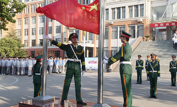 黨委書記孫晉東作了國(guó)旗下的講話,他在講話中強(qiáng)調(diào),新中國(guó)歷經(jīng)70年發(fā)展,中華民族實(shí)現(xiàn)了從站起來(lái)、富起來(lái)到強(qiáng)起來(lái)的跨越,中國(guó)特色社會(huì)主義迎來(lái)了中華民族偉大復(fù)興中國(guó)夢(mèng)的新時(shí)代,全體師生要增強(qiáng)國(guó)家觀念和愛(ài)國(guó)情懷,讓時(shí)代主旋律響徹校園。新時(shí)代要有新作為,新使命呼喚新?lián)?dāng),全體教師要擔(dān)負(fù)起塑造靈魂、塑造新人的時(shí)代重任,擔(dān)當(dāng)好立德樹人的責(zé)任使命。青年學(xué)生要珍惜青春時(shí)光,志存高遠(yuǎn),苦練本領(lǐng),提升職業(yè)素養(yǎng),胸懷大志,立志走技能成才,技能報(bào)國(guó)之路,不忘初心,牢記使命,以優(yōu)異的成績(jī),向新中國(guó)成立70周年獻(xiàn)禮。