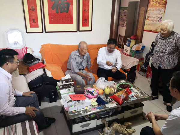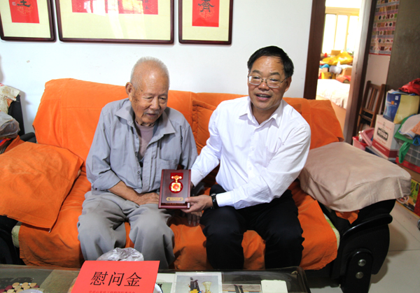 在喜迎中華人民共和國(guó)成立七十周年之際,9月24日,學(xué)院黨委書(shū)記孫晉東,副院長(zhǎng)崔世玉代表學(xué)院黨委對(duì)新中國(guó)成立前參加工作的老干部王茂榮進(jìn)行走訪慰問(wèn),受省人社廳委托將中共中央、國(guó)務(wù)院、中央軍委頒發(fā)的“慶祝中華人民共和國(guó)成立七十周年”紀(jì)念章送到本人手中,并送上慰問(wèn)金。孫書(shū)記仔細(xì)詢問(wèn)了王茂榮同志的身體、生活情況,向他致以節(jié)日的祝賀,也轉(zhuǎn)達(dá)了省人社廳領(lǐng)導(dǎo)的問(wèn)候,對(duì)他在革命、建設(shè)和學(xué)院發(fā)展做出的貢獻(xiàn)表示崇高敬意和衷心感謝!也希望老同志保重身體、健康長(zhǎng)壽,同時(shí)一如既往的關(guān)心支持學(xué)院的建設(shè)和發(fā)展。王茂榮同志感謝黨中央的關(guān)懷,感謝省廳、學(xué)院對(duì)他的關(guān)心和慰問(wèn),對(duì)學(xué)院日新月異的迅猛發(fā)展表示贊嘆,也祝愿學(xué)院的未來(lái)更加美好!學(xué)院工會(huì)、黨政辦、人事處的同志陪同參加了走訪慰問(wèn)。