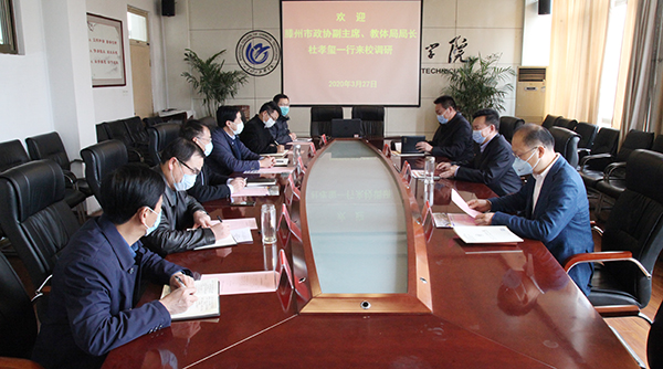 3月27日,滕州市政協(xié)副主席、教體局局長杜孝璽一行來我院學院路校區(qū)調(diào)研,學院黨委書記孫晉東,院長王慶杰,副院長張繼宏、崔世玉參加調(diào)研。