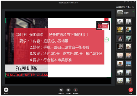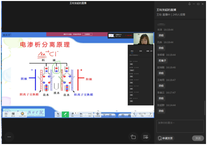 徐顯斌老師通過企業(yè)微信平臺(tái)采用會(huì)議模式,結(jié)合屏幕演示,在線講授了《攝影——白平衡》,徐老師用一段有關(guān)外賣小哥的抖音視頻導(dǎo)入新課,帶著思政教育講授新知識(shí),傳遞社會(huì)正能量,在授課過程中,講練集合,注重學(xué)生調(diào)動(dòng)學(xué)生學(xué)習(xí)興趣,同學(xué)們即時(shí)開麥搶答,課堂氣氛活躍。王玲老師通過企業(yè)微信平臺(tái),采用直播模式講授了《化工生產(chǎn)公用工程-電滲析》,王老師課堂教學(xué)設(shè)計(jì)完整嚴(yán)謹(jǐn),語言清晰,依據(jù)課程內(nèi)容,結(jié)合企業(yè)實(shí)際舉例講解,生動(dòng)細(xì)致透徹,同學(xué)們?cè)诹粞詤^(qū)積極回答老師提問,師生互動(dòng)秩序良好,氣氛融洽。