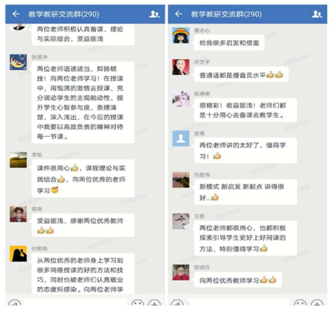 課后,兩位主講教師進(jìn)行了線上教學(xué)經(jīng)驗(yàn)分享,老師們紛紛表示,此次線上教學(xué)公開課互動(dòng)方式多樣,教學(xué)效果很好,充分展現(xiàn)了我院青年教師高超的信息化教學(xué)能力,搭建了線上教學(xué)相互學(xué)習(xí)平臺(tái),有助于推進(jìn)我院教學(xué)信息化建設(shè)和教學(xué)模式改革。