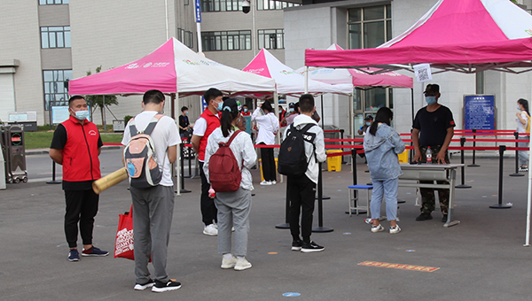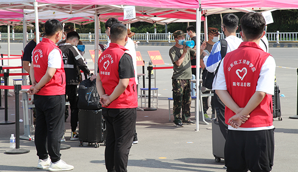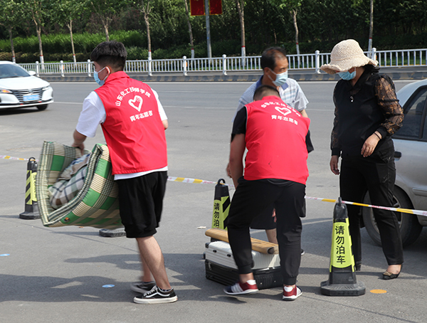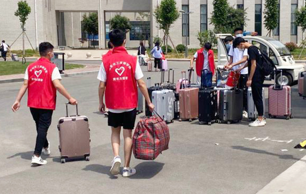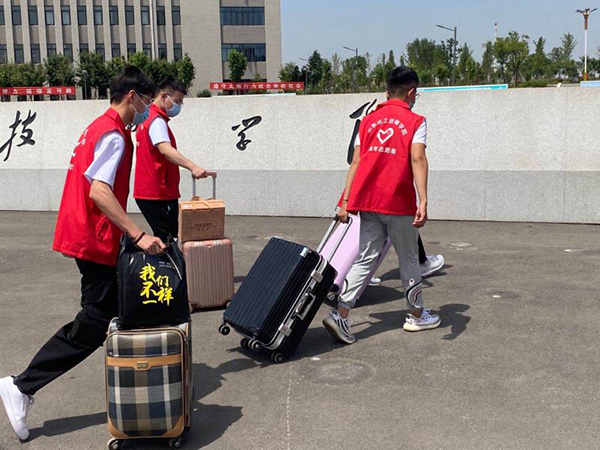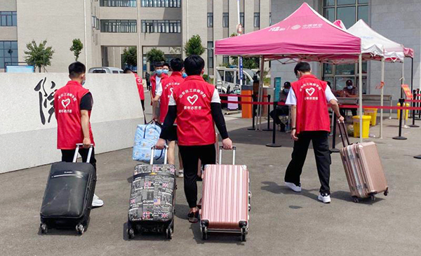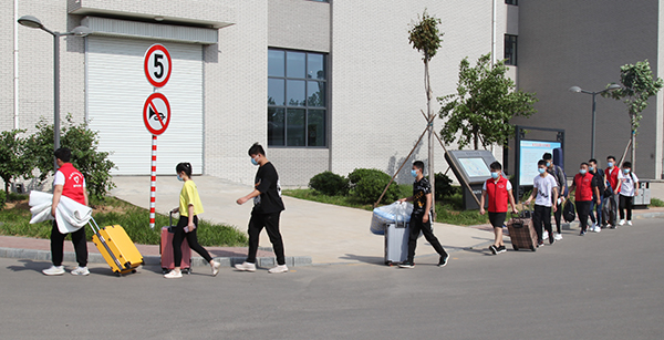 師生志愿者身著紅馬甲是學(xué)院的一道亮麗風(fēng)景線,他們穿梭忙碌在學(xué)生臨時下車點、學(xué)生入學(xué)通道、校園、宿舍,幫助行動不便、攜帶大件行李的同學(xué)運送行李,布置宿舍床鋪,汗水浸濕了他們的衣裳,口罩下透著他們陽光、樂觀的笑容。