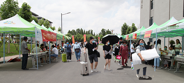 為便捷新同學(xué)的報(bào)到流程,學(xué)院各部門(mén)通力合作,開(kāi)設(shè)新生報(bào)到綠色通道,新同學(xué)在志愿者的帶領(lǐng)下,查詢班級(jí)、班級(jí)報(bào)到、安排宿舍、面試、掃碼交費(fèi)、領(lǐng)取公寓化物品,校內(nèi)專車(chē)接送至宿舍。一站式入校,讓在初夏時(shí)節(jié)來(lái)送學(xué)生的家長(zhǎng)感到滿意、舒心,新同學(xué)們也感到新校園“家”的溫馨。