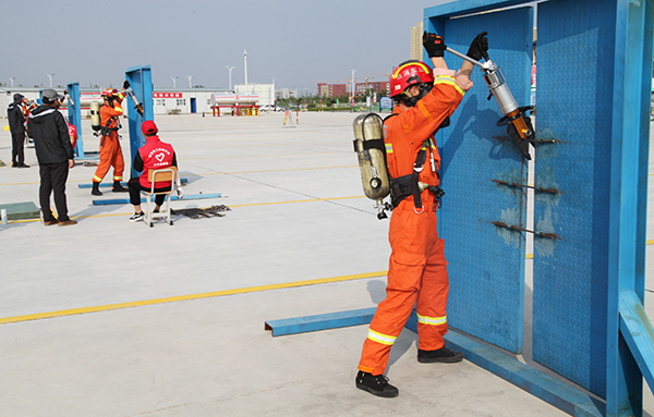 本次競(jìng)賽由省化工專項(xiàng)行動(dòng)辦、省應(yīng)急廳、省消防救援總隊(duì)、省委省直機(jī)關(guān)工委、省總工會(huì)、團(tuán)省委、省人力資源社會(huì)保障廳和省交通運(yùn)輸廳8部門聯(lián)合主辦,山東化工技師學(xué)院承辦,共有來(lái)自全省各地市的30支隊(duì)伍300余名選手參加比賽,競(jìng)賽共設(shè)理論考試、綜合體能、帶壓快速堵漏、單兵搶險(xiǎn)救援4個(gè)個(gè)人競(jìng)賽項(xiàng)目和化工裝置初期火災(zāi)處置、危險(xiǎn)化學(xué)品工藝管線帶壓堵漏、危險(xiǎn)化學(xué)品運(yùn)輸槽車泄漏處置、大流量移動(dòng)炮儲(chǔ)罐火災(zāi)撲救4個(gè)集體競(jìng)賽項(xiàng)目,賽程為期4天。