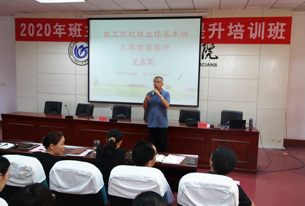培訓(xùn)班由教育部國(guó)培計(jì)劃優(yōu)秀講師、全國(guó)優(yōu)秀班主任王永軍教授主講。第一階段培訓(xùn)以“大學(xué)之道,在明明德,在親民,在止于至善”為切入點(diǎn),對(duì)班主任基本功的內(nèi)涵與內(nèi)容、班主任基本功大賽做詳實(shí)介紹。第二階段培訓(xùn)以“職業(yè)院校特色德育活動(dòng)創(chuàng)新與策劃”為重點(diǎn),運(yùn)用實(shí)際案例向全體班主任講述走進(jìn)學(xué)生營(yíng)造德育氛圍、家校溝通謀求德育實(shí)效、事件營(yíng)銷提升德育魅力、巧借資源擴(kuò)大德育影響和社會(huì)宣傳樹立德育品牌等。王教授以生動(dòng)的案例、詼諧的語言,深入淺出的將德育活動(dòng)策劃方式方法傳授給了大家,吸引了現(xiàn)場(chǎng)教師們的共鳴和炙熱的求學(xué)目光。第三階段培訓(xùn)由來自各系部6名2019年度優(yōu)秀班主任代表做經(jīng)驗(yàn)交流。他們結(jié)合自身工作從習(xí)慣養(yǎng)成、班風(fēng)建設(shè)、班干部培養(yǎng)、家校配合、常規(guī)管理等方面談了各自在班級(jí)管理中的點(diǎn)滴做法。