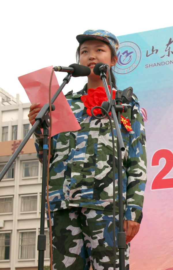 雄壯國歌響起,全體師生齊唱國歌,軍訓匯報拉開序幕,一支支團結向上、奮發(fā)進取,紀律嚴明、敢于吃苦,不怕困難、作風優(yōu)良的隊伍邁著整齊的步伐,依次經過主席臺展示軍訓成果。