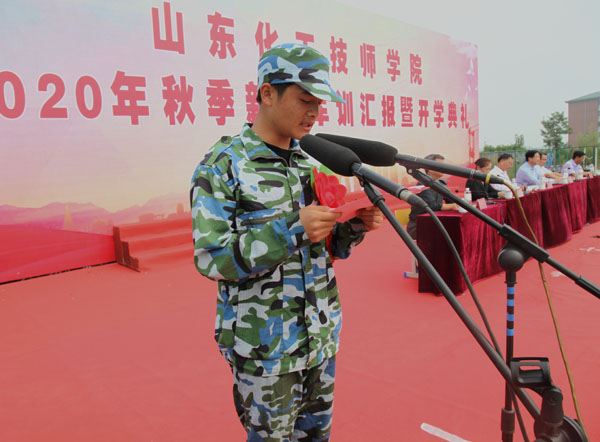 院長王慶杰在講話中代表學院歡迎2020級秋季新同學,面對新校園、新學期、新生活,向他們提出三點要求。一是堅定信心,勤學苦練,勇攀技能高峰。當前,全社會正在弘揚勞動光榮、創(chuàng)造偉大、技能寶貴的時代風尚,中國智造、大國工匠已成為時代主旋律,職業(yè)教育迎來了歷史最好的黃金期。我院李華健同學獲得第45屆世界技能大賽化學實驗室技術項目的優(yōu)勝獎,極大地提升了學院的知名度和影響力。希望同學們結合自己所學專業(yè),確立自己的理想和明確的人生目標,珍惜時光,勤奮好學,堅持不懈,成就精彩人生,成長為對國家、社會有貢獻的新時代大國工匠。二是從自身做起,積極踐行社會主義核心價值觀!吧倌曛莿t國智,少年強則國強”,樹立正確的價值觀是我們當代學生的使命所在,大家要自覺將社會主義核心價值觀,不僅要學會學習、學會做事,更重要的是學會做人。受表彰的唐巖同學,就是大家身邊的榜樣和典范。希望同學們向他學習,從自身做起,從小事做起,爭做社會主義核心價值觀的崇尚者和踐行者。三是繼續(xù)發(fā)揚軍隊的優(yōu)良傳統(tǒng)和作風,把軍訓中養(yǎng)成的良好作風保持下去。在今后的學習生活中要高標準,嚴要求,尊敬老師,團結同學,嚴格遵守學校各種規(guī)章制度,互相幫助、團結友愛,做文明學生。