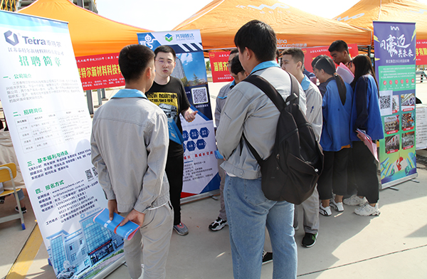 會前,組織了企業(yè)宣講會,組建了畢業(yè)生微信群、參會企業(yè)群,向畢業(yè)生介紹企業(yè)概況、發(fā)展前景、崗位薪資、待遇等情況,分別用各自不同的優(yōu)勢條件吸引畢業(yè)生。