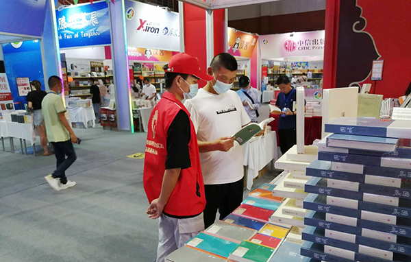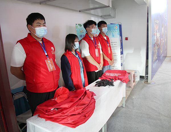 他們身著紅馬甲,在開幕式會場、會展現(xiàn)場、志愿者服務(wù)驛站、會展出入口等崗位,擔(dān)任入場安檢、導(dǎo)引、協(xié)助展位布展、維持現(xiàn)場秩序、發(fā)放書展宣傳圖冊、介紹書目等工作。他們掩蓋在口罩下的青春面孔、忙碌的身影,在紅馬甲的映襯下更顯青春靚麗,展現(xiàn)了我院青年學(xué)子快樂閱讀、昂揚(yáng)向上的精神風(fēng)貌。